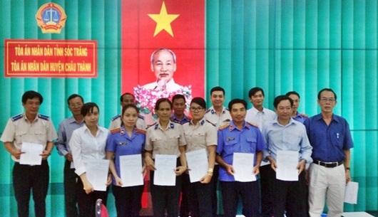 | Vào ngày 21/02/2017 Chi hội luật gia huyện châu Thành, Sóc Trăng long trọng tổ chức lễ kết nạp thêm mới 21 hội viên Chi hội luật gia. Tham dự buổi lễ và trao Quyết định có đồng chí Nguyễn Hoàng Hân, Phó chủ tịch Hội Luật gia tỉnh Sóc Trăng. |