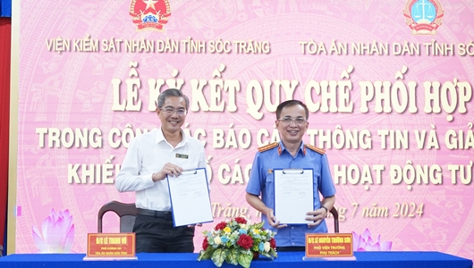 | Sáng ngày 15/7/2024, tại 789Winsko xyz đăng ký tỉnh Sóc Trăng tiến hành tổ chức Lễ ký kết Quy chế phối hợp công tác giải quyết khiếu nại, tố cáo; thông tin, báo cáo về công tác giải quyết khiếu nại, tố cáo trong hoạt động tư pháp giữa hai ngành Tòa án nhân dân và Viện kiểm sát nhân dân tỉnh Sóc Trăng. |