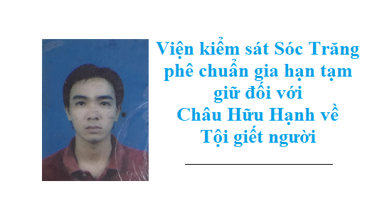 (26-02) Viện 789Win666 tỷ lệ trả thưởng phê chuẩn gia hạn tạm giữ đối với Châu Hữu Hạnh về Tội giết người |
