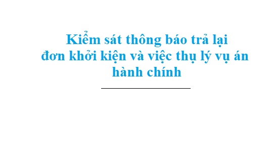 (18-09) Kiểm sát thông báo trả lại đơn khởi kiện và việc thụ lý vụ án hành chính |